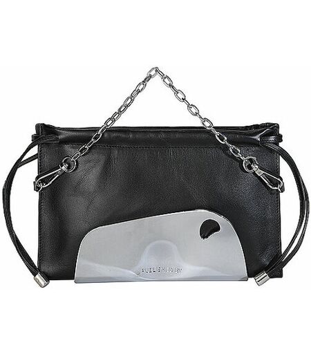 Modische Damen Umhängetasche aus Leder mit Chrome-Details Hauptfach mit Tunnelzug Abnehmbarer Kettenriemen Abnehmbarer breiter Schulterriemen Logo-Prägung auf der Vorderseite Farbbezeichnung: Black & Chrome Maße: B: 26 x H: 16 x T: 2,5 cm Material: Leder, Chrome ...
