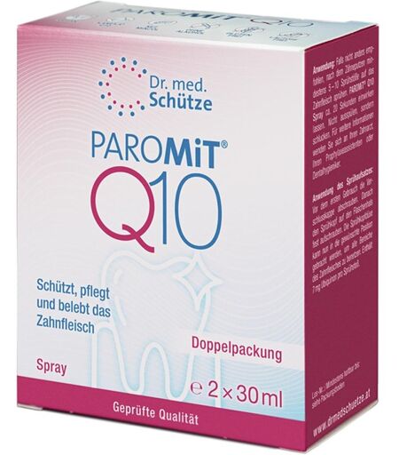 Anwendungsgebiet von Paromit Q10 Spray DoppelpackungPAROMiT® Q10 Spray schützt, pflegt und belebt das Zahnfleisch. Der richtige „Kraftstoff“ dafür ist Coenzym Q10: flüssig und in Form eines Sprays direkt auf die Mundschleimhaut aufgetragen, gelangt es rasch in die Zelle und deren „Kraftwerken“, den Mitochondrien. Dort unterstützt es die Energieversorgung der Zellen und die körpereigenen Abwehrkräfte. Um jenen Bakterien entgegenzutreten, die die Mundschleimhaut bei einer Gingivitis (Zahnfleischentzündung) oder Parodontitis (chronisch-entzündliche Erkrankung des Zahnhalteapparates) besiedeln, benötigt das Immunsystem nämlich sehr viel Energie.Wirkungsweise von Paromit Q10 Spray DoppelpackungPAROMiT® Q10 Spray eignet sich in Kombination mit einer konsequenten Mundpflege zu Hause und einer regelmäßigen professionellen Zahnreinigung bei ihrem Zahnarzt ideal zur natürlichen begleitenden Anwendung einer Therapie von Gingivitis oder Parodontitis.PAROMiT® Q10 Spray enthält flüssiges Coenzym Q10, das in unseren Körperzellen, vor allem in den Mitochondrien, den Kraftwerken der Zellen, wesentliche Aufgaben erfüllt. Wenn flüssiges Coenzym Q10 in Form eines Sprays direkt auf die Mundschleimhaut aufgetragen wird, gelangt es rasch zur Zelle und den Mitochondrien, wo es die Energiebereitstellung für das Immunsystem unterstützt. Ein starkes Immunsystem ist notwendig, um den „schlechten“ Bakterien und den daraus resultierenden Zahnfleischproblemen entgegenzutreten. Zudem hat Coenzym Q10 eine antioxidative Wirkung und leistet als Radikalfänger einen wertvollen Beitrag für das Zahnfleisch und damit für die Mundgesundheit.Wirkstoffe / Inhaltsstoffe / ZutatenZutaten von Paromit Q10 Spray Doppelpackung:Glycerin, Aqua, Ubiquinon (Coenzym Q10), Lecithin, Caprylic/Capric Triglyceride, Mentha Piperita (Peppermint) OilFrei von Farb- und Konservierungsstoffen, Gluten, Milchzucker, Milcheiweiß, Hefe, künstlichen Emulgatoren. Enthält nur Sojalecithin aus ni ...
