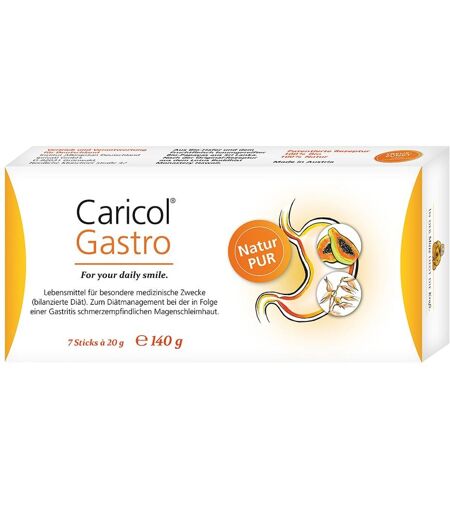 1 Stick = 0,24 BE.HinweiseLebensmittel für besondere medizinische Zwecke (bilanzierte Diät). Zum Diätmanagement bei der in Folge einer Gastritis schmerzempfindlichen Magenschleimhaut.Caricol Gastro Sticks können in Ihrer Versandapotheke www.apolux.de erworben werden. ...