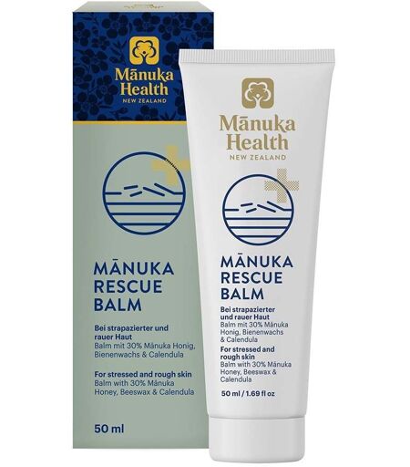 Manuka Health MANUKA RESCUE BALM Ist eine natürliche, intensiv pflegende Salbe mit 30 % hochwertigem neuseeländischem Mānuka Honig, Bienenwachs und Calendula. Der reichhaltige, nicht klebrige Balm unterstützt die Wiederherstellung der Hautbarriere und gibt strapazierter, rissiger und rauer Haut nachhaltig wirksame Pflege. Ideal bei strapazierter Haut, z.B. rauen, rissigen Händen und Füßen, spröden Lippen, rissigen Brustwarzen in der Stillzeit (Bitte entfernen Sie vor dem Stillen eventuelle Reste der Creme) oder schuppiger Haut. Für jedes Alter und jeden Hauttyp geeignet. Sanfte Spezialpflege mit der natürlichen Kraft von Mānuka Honig 99,7 % natürliche Inhaltsstoffe Dermatologisch getestet Entwickelt nach COSMOS Standard Frei von Duft- und Farbstoffen, Parabenen, Mineralölen oder Silikonen Nicht an Tieren getestet Nachhaltige Verpackung Mānuka Health ist Neuseelands Experten Nr. 1 für authentische Mānuka - und Bienenerzeugnisse sowie führend in der Erforschung von Mānuka Honig. Unsere Produkte sind das Ergebnis von mehr als 10 Jahren Forschung uns Erfahrung. Natürlich kraftvolle Mānuka Honig Produkte für die ganze Familie. Anwendung: Eine kleine Menge auf die betroffene Hautstelle und die Umgebung auftragen. Bei Bedarf wiederholen. Geeignet für jedes Alter und jeden Hauttyp, besonders für empfindliche und sehr trockene Haut. Zusammensetzung: Aqua, Mel, Cetearyl Alcohol, Prunus Armeniaca Kernel Oil, Cera Alba, Calophyllum Tacamahaca Seed Oil, Helianthus Annus Seed Oil, Galactoarabinan, Tocopherol, Leptosperum Scoparium Branch/Leaf Oil, Calendula Officinalis Flower Extract, Ceteaeyl Glucoside, Bisabolol, Aloe Barbadensis Leaf Juice Powder, Sclerotium Gum, Xanthan Gum, Triethyl Citrate, Glyceryl Caprylate, Benzoic Acid, Potassium Sorbate ...
