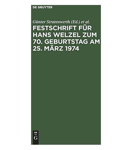 Günter Stratenwerth - Festschrift für Hans Welzel zum 70. Geburtstag am 25. März 1974