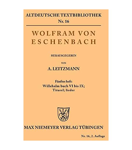 Brand : de Gruyter, Binding : Taschenbuch, Edition : 2., verbesserte, Label : De Gruyter, Publisher : De Gruyter, medium : Taschenbuch, numberOfPages : 205, publicationDate : 1926-04-01, authors : Eschenbach, Wolfram Von, publishers : Albert Leitzmann, ISBN : 3110483513 ...