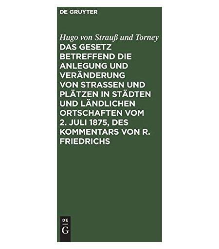 Strauß und Torney, Hugo von - Das Gesetz betreffend die Anlegung und Veränderung von Straßen und Plätzen in Städten und ländlichen Ortschaften vom 2. Juli 1875, des Kommentars von R. Friedrichs