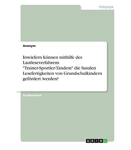Anonym - Inwiefern können mithilfe des Lautleseverfahrens Trainer-Sportler-Tandem die basalen Lesefertigkeiten von Grundschulkindern gefördert werden?