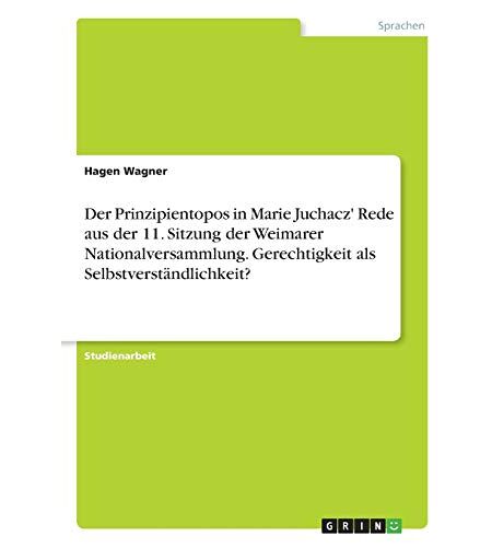 Hagen Wagner - Der Prinzipientopos in Marie Juchacz' Rede aus der 11. Sitzung der Weimarer Nationalversammlung. Gerechtigkeit als Selbstverständlichkeit?