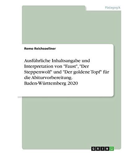 Remo Reichsoellner - GEBRAUCHT Ausführliche Inhaltsangabe und Interpretation von Faust, Der Steppenwolf und Der goldene Topf für die Abiturvorbereitung. Baden-Württemberg 2020 - Preis vom 18.09.2025 05:07:49 h
