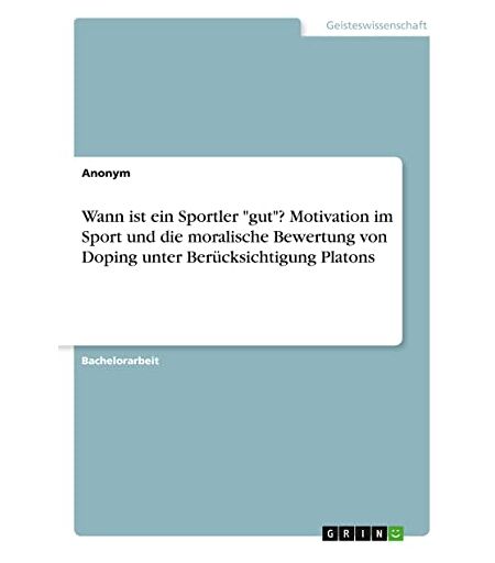 Anonym - Wann ist ein Sportler gut? Motivation im Sport und die moralische Bewertung von Doping unter Berücksichtigung Platons