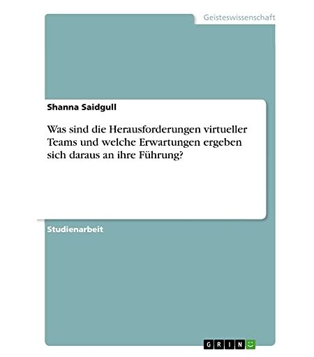 Binding : Taschenbuch, Edition : 1., Label : GRIN Verlag, Publisher : GRIN Verlag, medium : Taschenbuch, numberOfPages : 68, publicationDate : 2023-05-17, authors : Shanna Saidgull, ISBN : 3346876381 ...