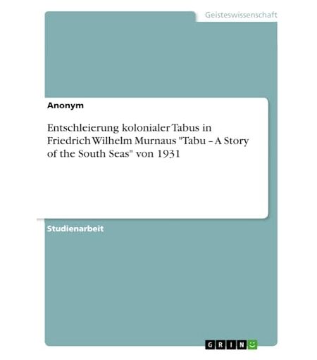 Anonymous - Entschleierung kolonialer Tabus in Friedrich Wilhelm Murnaus Tabu ¿ A Story of the South Seas von 1931