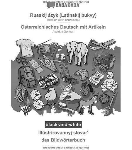 Babadada Gmbh - BABADADA black-and-white, Russkij âzyk (Latinskij bukvy) - Österreichisches Deutsch mit Artikeln, Illûstrirovannyj slovar' - das Bildwörterbuch: ... - Austrian German, visual dictionary