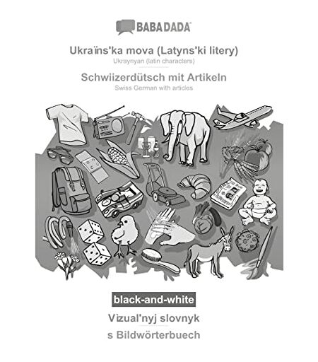Babadada Gmbh - BABADADA black-and-white, Ukraïns'ka mova (Latyns'ki litery) - Schwiizerdütsch mit Artikeln, Vìzual'nyj slovnyk - s Bildwörterbuech: Ukraynyan (latin ... Swiss German with articles, visual dictionary