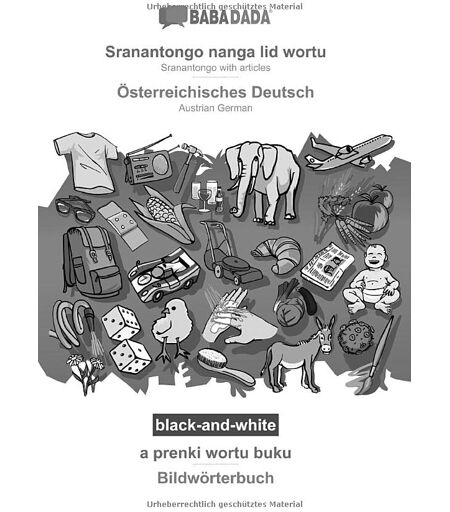 Babadada Gmbh - BABADADA black-and-white, Sranantongo with articles (in srn script) - Österreichisches Deutsch, visual dictionary (in srn script) - Bildwörterbuch: ... script) - Austrian German, visual dictionary