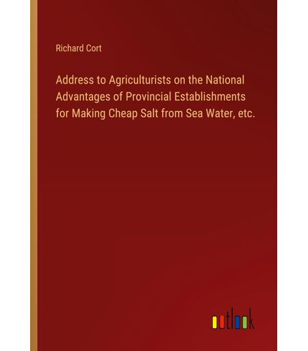 Brand : Outlook Verlag, Binding : paperback, Label : Address to Agriculturists on the National Advantages of Provincial Establishments for Making Cheap Salt from Sea Water, etc., medium : paperback, numberOfPages : 20, publicationDate : 2024-08-30, releaseDate : 2024-08-30, languages : english, ISBN : 3368899104 ...