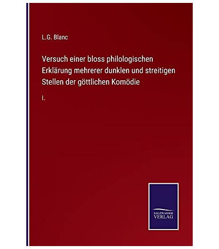 Blanc, L. G. - Versuch einer bloss philologischen Erklärung mehrerer dunklen und streitigen Stellen der göttlichen Komödie: I.