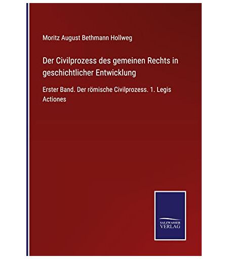 Bethmann Hollweg, Moritz August - Der Civilprozess des gemeinen Rechts in geschichtlicher Entwicklung: Erster Band. Der römische Civilprozess. 1. Legis Actiones
