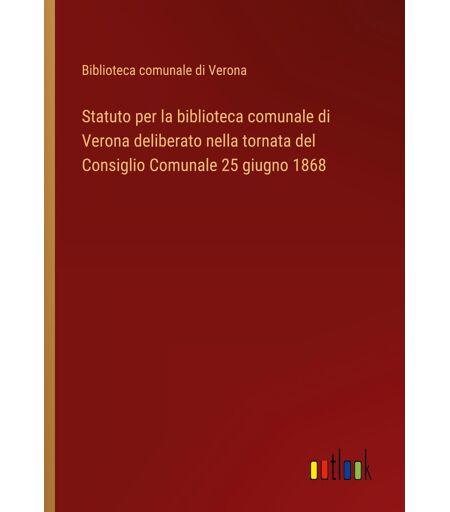 Brand : Outlook Verlag, Binding : paperback, Label : Statuto per la biblioteca comunale di Verona deliberato nella tornata del Consiglio Comunale 25 giugno 1868, medium : paperback, numberOfPages : 16, publicationDate : 2024-09-01, languages : italian, ISBN : 3385082323 ...