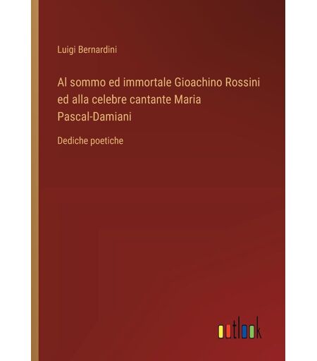 Brand : Outlook Verlag, Binding : paperback, Label : Al sommo ed immortale Gioachino Rossini ed alla celebre cantante Maria Pascal-Damiani : Dediche poetiche, medium : paperback, numberOfPages : 20, publicationDate : 2024-09-03, languages : italian, ISBN : 3385083745 ...
