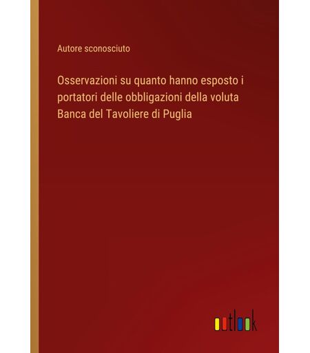 Binding : paperback, Label : Osservazioni su quanto hanno esposto i portatori delle obbligazioni della voluta Banca del Tavoliere di Puglia, medium : paperback, numberOfPages : 192, publicationDate : 2024-06-03, languages : italian, ISBN : 3385061695 ...
