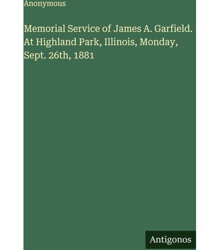 - Memorial Service of James A. Garfield. At Highland Park, Illinois, Monday, Sept. 26th, 1881