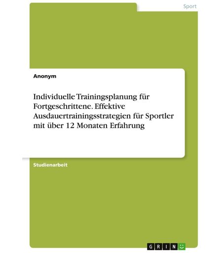 - Individuelle Trainingsplanung für Fortgeschrittene. Effektive Ausdauertrainingsstrategien für Sportler mit über 12 Monaten Erfahrung
