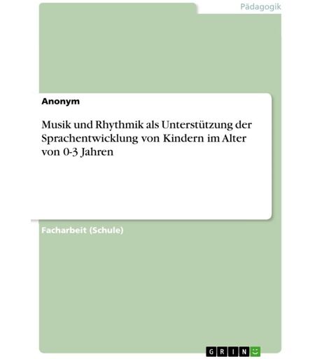 Brand : GRIN Verlag, Binding : paperback, Edition : 1., Label : Musik und Rhythmik als Unterstützung der Sprachentwicklung von Kindern im Alter von 0-3 Jahren, medium : paperback, numberOfPages : 36, publicationDate : 2024-08-30, languages : german, ISBN : 3389070346 ...