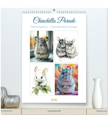 Chinchilla Parade (High Quality Premium Wall Calendar 2026 DIN A2 portrait),CALVENDO 12 Month Wall Calendar: Fluffy Companions - A Chinchilla Year in AI Art