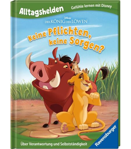 Brand : Ravensburger, Binding : hardcover, Edition : 1, Label : Der König der Löwen - Keine Pflichten, keine Sorgen? - Über Verantwortung und Selbstständigkeit - Bilderbuch ab 3 Jahren (Alltagshelden - Gefühle lernen mit Disney), medium : hardcover, numberOfPages : 32, publicationDate : 2025-07-01, languages : german, ISBN : 3473498394 ...