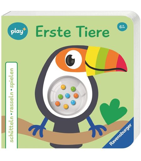 Brand : Ravensburger, Binding : board_book, Edition : 1, Label : Ravensburger Play+ schütteln, rasseln, spielen : Erste Tiere, Baby-Buch ab 6 Monate, medium : board_book, numberOfPages : 12, publicationDate : 2024-09-20, languages : german, ISBN : 3473456004 ...