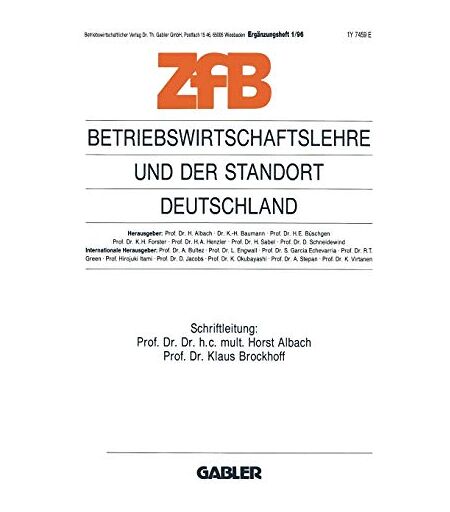 Brockhoff, Dr. Klaus M. - Betriebswirtschaftslehre und der Standort Deutschland (Zeitschrift für Betriebswirtschaft) (German Edition) (Zeitschrift für Betriebswirtschaft (3/93))