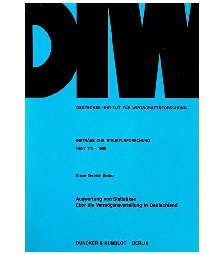 Klaus-Dietrich Bedau - Auswertung von Statistiken über die Vermögensverteilung in Deutschland. (Deutsches Institut für Wirtschaftsforschung. Beiträge zur Strukturforschung)