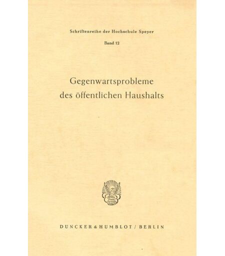 - Gegenwartsprobleme des öffentlichen Haushalts.: Vorträge und Diskussionsbeiträge der internationalen verwaltungswissenschaftlichen Arbeitstagung der ... der Hochschule Speyer, Band 12)