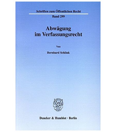 Bernhard Schlink - Abwägung im Verfassungsrecht. (Schriften zum Öffentlichen Recht; SÖR 299)