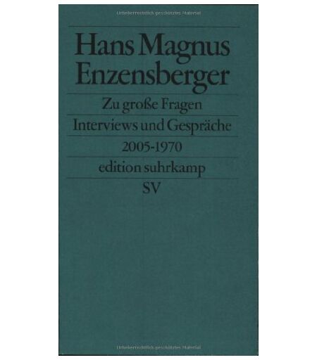 Enzensberger, Hans Magnus - GEBRAUCHT Zu große Fragen: Gespräche und Interviews 2005-1970 (edition suhrkamp) - Preis vom 18.09.2025 05:07:49 h