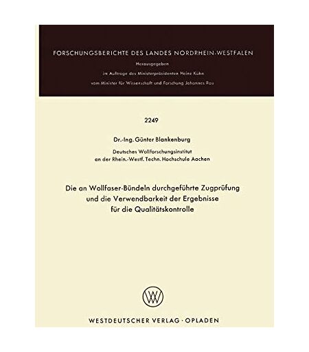 Blankenburg, Dr. Gunter - Die an Wollfaser-Bündeln Durchgeführte Zugprüfung und die Verwendbarkeit der Ergebnisse für die Qualitätskontrolle (Forschungsberichte des Landes Nordrhein-Westfalen) (German Edition)