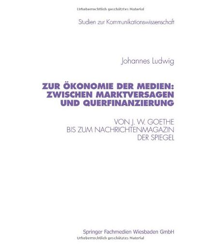 Johannes Ludwig - Zur Ökonomie der Medien: Zwischen Marktversagen Und Querfinanzierung: Von J. W. Goethe Bis Zum Nachrichtenmagazin Der Spiegel (Studien Zur Kommunikationswissenschaft) (German Edition)