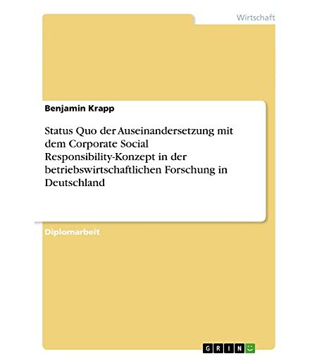 Benjamin Krapp - Status Quo der Auseinandersetzung mit dem Corporate Social Responsibility-Konzept in der betriebswirtschaftlichen Forschung in Deutschland: Diplomarbeit
