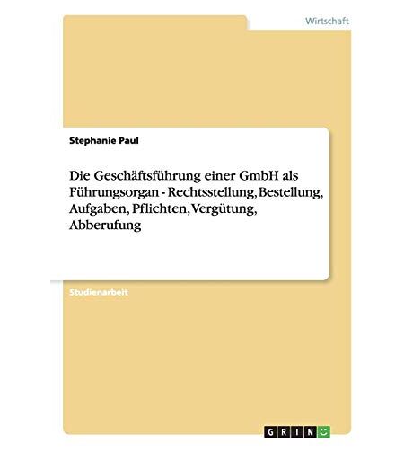Stephanie Paul - Die Geschäftsführung einer GmbH als Führungsorgan - Rechtsstellung, Bestellung, Aufgaben, Pflichten, Vergütung, Abberufung