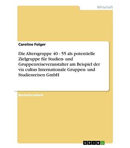 Caroline Folger - Die Altersgruppe 40 - 55 als potentielle Zielgruppe für Studien- und Gruppenreiseveranstalter am Beispiel der via cultus Internationale Gruppen- und Studienreisen GmbH