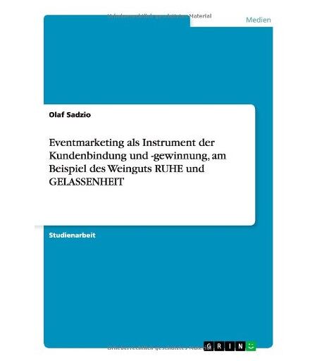 Olaf Sadzio - Eventmarketing als Instrument der Kundenbindung und -gewinnung, am Beispiel des Weinguts RUHE und GELASSENHEIT