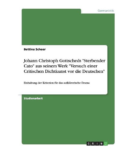 Bettina Scheer - Johann Christoph Gottscheds Sterbender Cato aus seinem Werk Versuch einer Critischen Dichtkunst vor die Deutschen: Einhaltung der Kriterien für das aufklärerische Drama