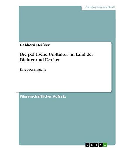Gebhard Deissler - Die politische Un-Kultur im Land der Dichter und Denker: Eine Spurensuche
