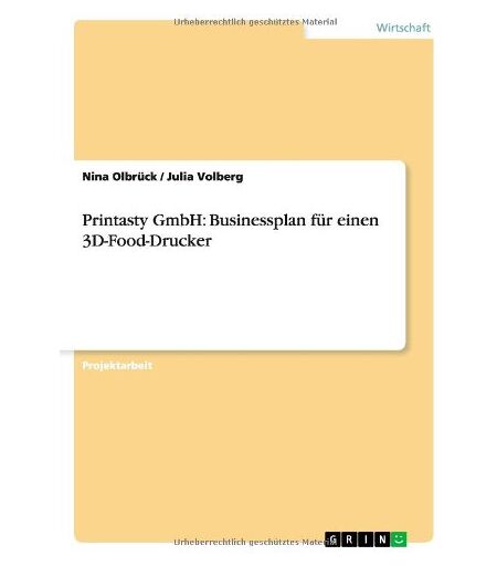 Nina Olbrück - Printasty GmbH: Businessplan für einen 3D-Food-Drucker
