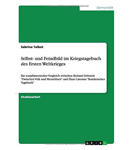 Sabrina Talbot - Selbst- und Feindbild im Kriegstagebuch des Ersten Weltkrieges: Ein sozialhistorischer Vergleich zwischen Richard Dehmels Zwischen Volk und Menschheit und Hans Carossas Rumänisches Tagebuch