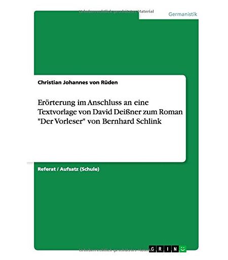 Rüden, Christian Johannes von - Erörterung im Anschluss an eine Textvorlage von David Deißner zum Roman Der Vorleser von Bernhard Schlink