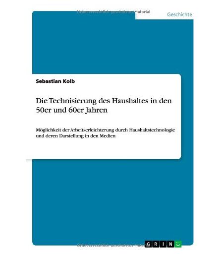 Sebastian Kolb - Die Technisierung des Haushaltes in den 50er und 60er Jahren: Möglichkeit der Arbeitserleichterung durch Haushaltstechnologie und deren Darstellung in den Medien