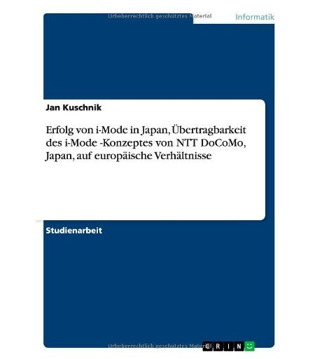 Jan Kuschnik - Erfolg von i-Mode in Japan, Übertragbarkeit des i-Mode -Konzeptes von NTT DoCoMo, Japan, auf europäische Verhältnisse