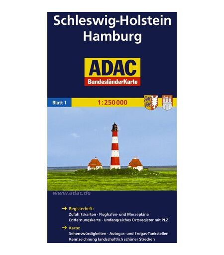 GEBRAUCHT ADAC Bundesländerkarte Schleswig-Holstein, Hamburg 1:250.000: Registerheft: Zufahrtskarten - Flughafen- und Messepläne - Entfernungskarte - ... Kennzeichnung landschaftlich schöner Strecken - Preis vom 18.09.2025 05:07:49 h