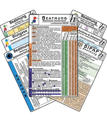 Uwe Hawelka Verlag - Beatmungs-Karten-Set - professional 2016 (7er-Set) - Medizinische Taschen-Karte: Bestehend aus: Beatmung - Beatmungsformen, Indikationen, ... Säure-Basen & Elektrolyte -intensiv- Azidose