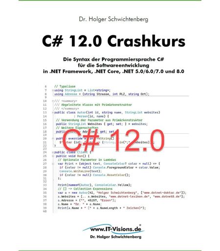 Binding : paperback, Label : C# 12.0 Crashkurs : Die Syntax der Programmiersprache C# für die Softwareentwicklung in .NET Framework, .NET Core, .NET 5.0/6.0/7.0 und 8.0 (.NET ... von Dr. Holger Schwichtenberg, Band 1), medium : paperback, numberOfPages : 404, publicationDate : 2023-10-30, languages : german, ISBN : 3934279430 ...