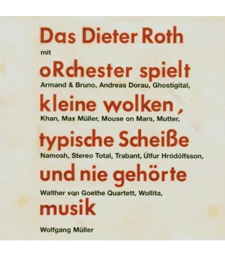 GEBRAUCHT Das Dieter Roth oRrchester spielt kleine wolken, typische scheisse und nie gehörte musik. Musik-CD: Mit: Armand & Bruno, Andreas Dorau, Ghostigital, ... von Goethe Quartett, Wollita, Wolfgang Müller - Preis vom 18.09.2025 05:07:49 h